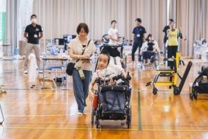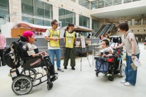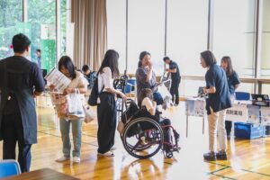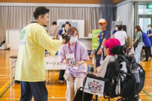 ⾞椅⼦での来場が多くなると考えており、混雑を避けれるように会場内を広くスペースを空けております。